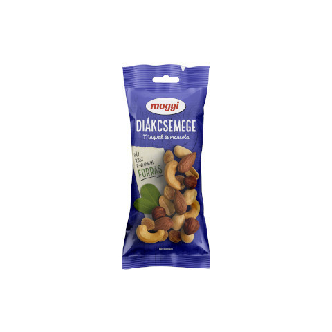 Mogyi Diákcsemege 70 g A Mogyi Diákcsemege egy könnyen hordozható, ropogós sós snack, amelyet kifejezetten uzsonnára és közös nassoláshoz terveztek. A praktikus 70 g-os kiszerelésnek köszönhetően bárhol és bármikor kéznél van – legyen az is