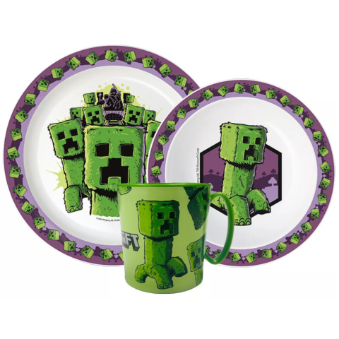 RAKTÁRRÓL AZONNAL! Minecraft étkészlet, micro műanyag szett - BPA mentes - Származási ország: Spanyolország - A termék környezetbarát, újrahasznosítható anyagból készült a Föld védelmében A készlet tartalma: 1 db mélytálka (mikrózható műanyag) 1 db lapos