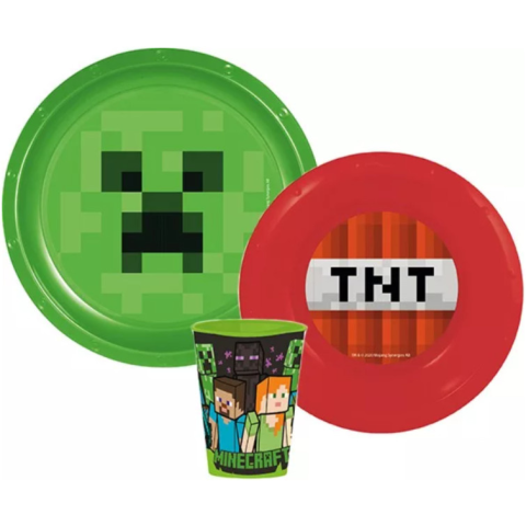 RAKTÁRRÓL AZONNAL! Minecraft étkészlet, műanyag - BPA mentes - Származási ország: Spanyolország - A termék környezetbarát, újrahasznosítható anyagból készült a Föld védelmében NEM MIKRÓZHATÓ! A szett tartalma: 1 db mélytálka 1 db lapostányér 1 db pohár 26