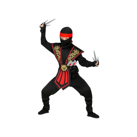 Minden beöltözős buliba és farsangra kell egy harcos Ninja! A fiúk most egy piros-fekete kombat ninjának öltözhetnek, amihez kiegészítők is járnak. A praktikus kezeslábas ruha könnyen felhúzható bármilyen ruházatra, a mellvért pedig arany színű mintával van díszítve és egy övvel köthető össze.Mérete: 140-es.Csomagolás mérete: 30 x 5 x 40 cm.
