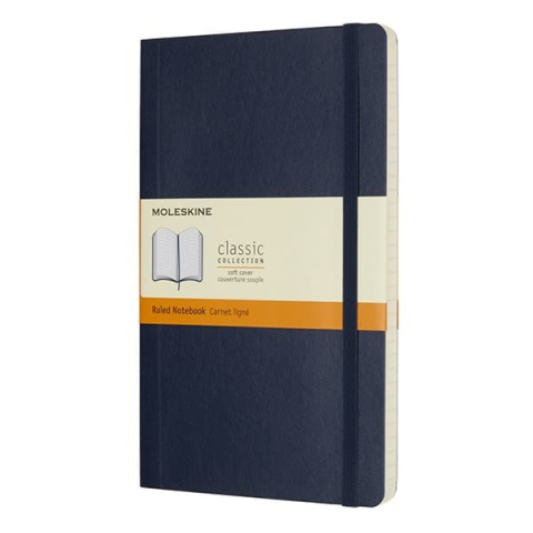 Notesz vonalas MOLESKINE QP616B20 L puhafedeles zafirkék Ez az egyszerű, klasszikus közepes méretű vonalas notesz a Moleskine legnépszerűbb termékeinek egyike. Megbízható útitárs, írásra, gondolatok és futó ötletek rögzítésére termett, lekerekített sar
