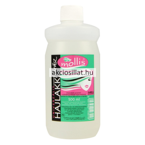 Mollis Univerzális Hajlakk Utántöltő 500ml A Mollis Univerzális Hajlakk Utántöltő tökéletes választás a frizurád rögzítésére, normál tartás biztosítására. A hajlakkot kifejezetten mechanikus utántöltős készülékekhez fejlesztették, így könnyedén alkalmazha