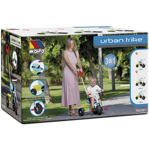 A legkisebbek is megismerkedhetnek a bringázás élményével ennek a nagyszerű triciklinek köszönhetően, és mindezt teljes biztonságban tehetik a szülők legnagyobb örömére. Az Urban Trike háromkerekű tricikli a vidám színeivel és biztonságos kialakításával a tíz hónapos korosztály részére készült. Az első keréken kialakított taposópedál könnyen használhatóvá, míg a nagy