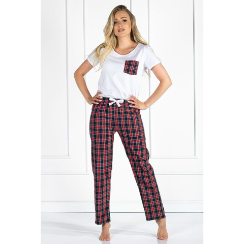 Momenti Per Me Vivienne női luxuspizsama, fehér, kockás mintás S