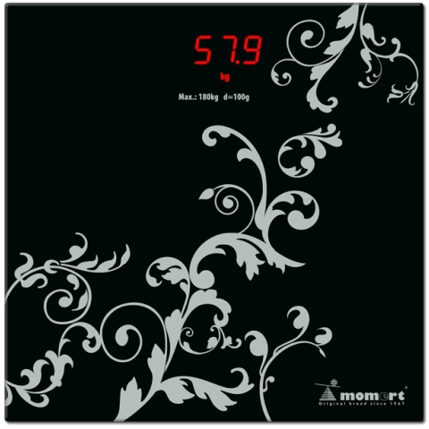 Elektronikus személymérleg festett üveg mérőfelülettel és rejtett LED kijelzővel.