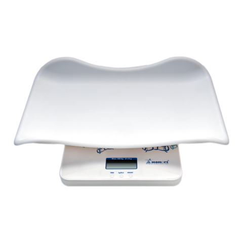 Könnyű, műanyag babatállal, vidám mintával. A babatál levehető, így használható gyerekmérlegként is vagy akár háztartási mérlegként.