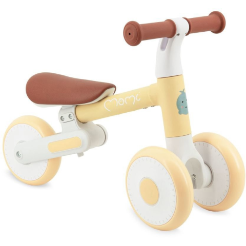 Futóbicikli - gyermekkel együtt növő, váz anyaga műanyag, ülésmagasság 22 cm és 24 cm között, tömege 2 kg, terhelhetősége 20 kg, sárga kivitel Ezen MoMi lábbal hajtós járgány sokáig elszórakoztatja a gyermeket. Szerkezetét műanyagból alkották meg, amelynek hála nagyon könnyű. Az ülőke magassága 22 és 24 cm közti tartományban változtatható. E