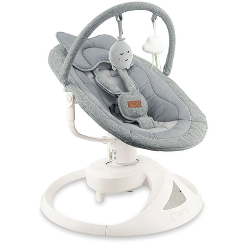 Pihenőszék - hintamechanikával, max. teherbírás 9 kg, Bluetooth, időzítő, állítható hangerő, mosható huzat, dallamok és hangok lejátszása, 360°-ban forgatható, távirányító, pozicionálható, ajánlott újszülött kortól, automatikus hintamechanika, játékok és távirányító a csomag része, becsatolás módja 5-pontos biztonsági öv, 2 pozíció, szürke kivitel, mérete 78 × 65 × 64 cm (Ma×Sz×Mé), tömege 5,8 kg, 6 AA 1,5V elem (nincs mellékelve), fém váz A
