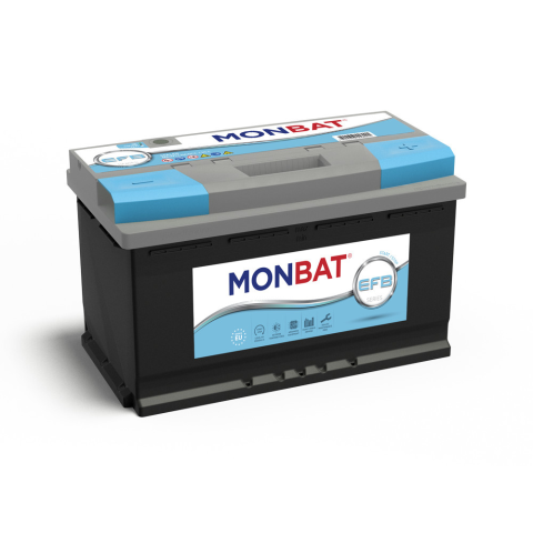 Monbat EFB 75Ah Jobb+ autó akkumulátor. Alacsony kivitelű enhanced flooded battery (EFB) akkumulátor (175 mm magas). Ford Start-Stop rendszerű járművekhez. OE CC1T-10655-BA — FORD OE BV6N-10655-BB — FORD OE CC1T-10655-BB — FORD OE 1744945 — FORD OE 17540
