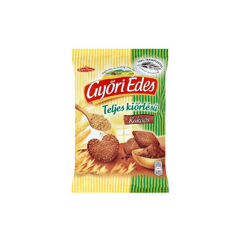 Győri Édes Teljeskiőrlés Kakaós – 150 g Friss, ropogós és kakaós élmény egyenesen a Győri Édes hagyományos receptje alapján. A 150 g-os csomagolás praktikus, gyors uzsonna vagy kóstoló darabokhoz. Kiemelt jellemzők Teljes kiőrlésű lisztből készül