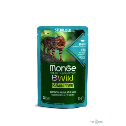 Monge BWild Grain Free Cat 85g Sterilised - Tonhal, Garnéla és zöldségek macskaeledel termékleírás