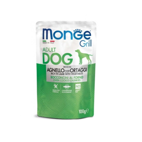 Teljes Monge Grill kutyaeledel bárány darabok zöldségekkel 100g termékleírás