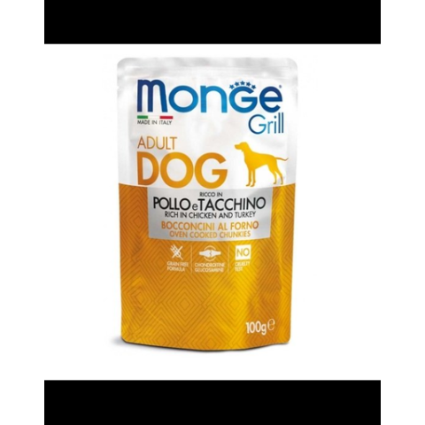 Teljes Monge Grill kutyatáp csirkedarabok pulykával 100g termékleírás