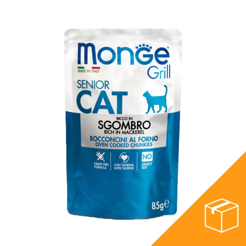 Monge Grill Senior Alutasakos Macskaeledel (Makréla) - 28x85 g macskaeledel termékleírás