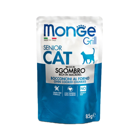 Monge Grill Senior Alutasakos Macskaeledel (Makréla) - 85 g macskaeledel termékleírás