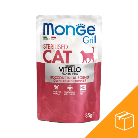 1 kép Monge Grill Sterilised Alutasakos Macskaeledel (Borjú) - 28x85 g