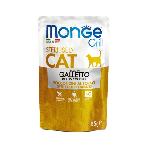 Teljes Monge Grill Sterilised Alutasakos Macskaeledel (Kakas) - 85 g termékleírás