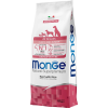 Monge Speciality Line Dog Puppy & Junior Monoprotein Beef with Rice teljes értékű kölyöktáp. Fő összetevője a marhahús, ami könnyen emészthető és a hozzáadott friss húsnak köszönhetően nagyon ízletes. Kizárólag egyféle állati eredetű fehérjét tartalmaz. A termék xylo-oligoszacharideket és probiotikumokat tartalmaz, amelyek támogatják a kölyökkutyák megfelelő emésztést. Glükózamint és kondroitin-szulfátot is tartalmaz az ízületek és csontok eg