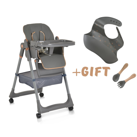 1 kép Moni Lindo etetőszék kiegészítőkkel (előke, kanál, villa) Szürke