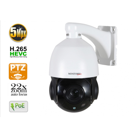 - 5 MPIX KÜLTÉRI IP KAMERA, 22X OPTIKAI ZOOM AUTOMATA FÓKUSSZAL, INFRAVÖRÖS LÁTÁSMÓD 60 MÉTERIG • 1/2.5Aptina 5.1MP High Performance CMOS Sensor • H.264/H.265 kódolás • 22X Optical Zoom (f=3.9mm-85.5mm) • IR Éjszakai látótávolság max. 60m • IP66 kültéri v