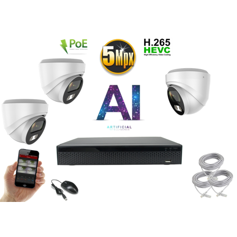 Új generációs kamerarendszer, 3 intelligens kamerával, 5 MPIX - 2616 (H) * 1964 (V) 2,8 mm-es fix objektív, 105 fokos látószög A kamerák fém, vízálló (IP 67) vandálbiztos kivitelüek, éjszakai látásmód akár 30 m-ig. A kamerák mikrofonnal és mikrofon nélkü