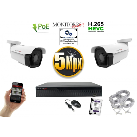 - Ezt a kamerarendszert nagy nyílt területek, például parkolóhelyek figyelésére tervezték. Az 5MPix (2592 x 1944) felbontás lehetővé teszi a legkissebb részletek észlelését is. A kamera beépített ötszörös motoros zoommal rendelkezik, automatikus fókuszáláss