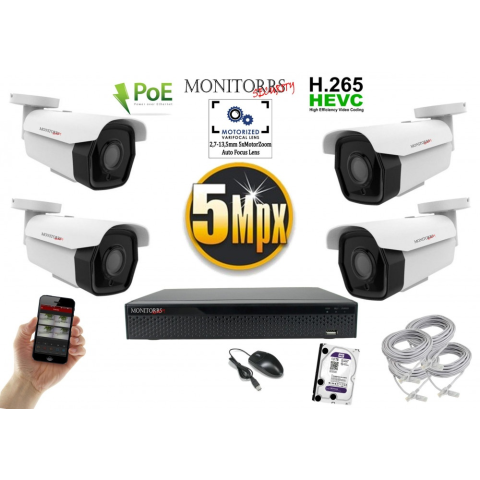 - Ezt a kamerarendszert nagy nyílt területek, például parkolóhelyek figyelésére tervezték. Az 5MPix (2592 x 1944) felbontás lehetővé teszi a legkissebb részletek észlelését is. A kamera beépített ötszörös motoros zoommal rendelkezik, automatikus fókuszáláss