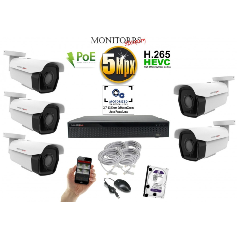 - Ezt a kamerarendszert nagy nyílt területek, például parkolóhelyek figyelésére tervezték. Az 5MPix (2592 x 1944) felbontás lehetővé teszi a legkissebb részletek észlelését is. A kamera beépített ötszörös motoros zoommal rendelkezik, automatikus fókuszáláss