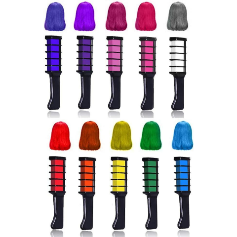 Hajszínező kréta, fésűkréta 10 különböző színben. Legyél színes! Variáld a stílusokat a Hajszínező krétákkal! Gyors és könnyű használni. Könnyen vízzel kimosható és nem roncsolja a hajat, kozmetikai minőségű anyagból készült a termék. A hajszínező krétá