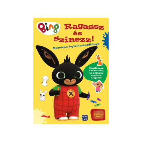 A "Bing - Ragassz és színezz!" egy matricás foglalkoztatókönyv, amely lehetővé teszi, hogy a gyerekek megismerjék Binget és barátait, miközben színes matricákkal dolgoznak. A könyv többet nyújt, mint egy egyszerű kifestő, mert az 50 matrica között megtalálják a szereplők képeit, amelyeket be kell ragasztaniuk a megfelelő helyre.