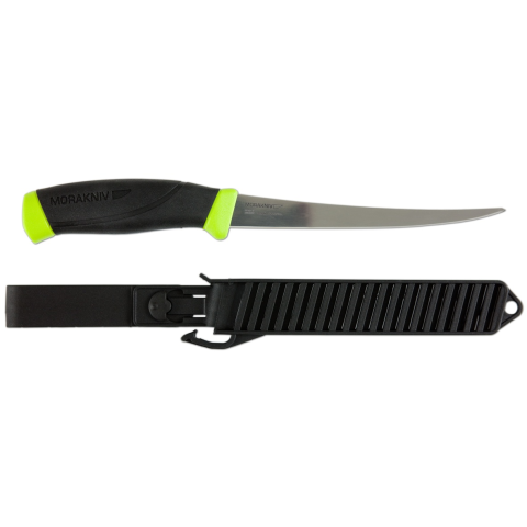 Mora Comfort Fillet 155A Comfort Fillet filézőkés pengéje speciális hidegen hengerelt rozsdamentes svéd acél. A markolat csúszásmentes gumi bevonattal készül, a rácsos kialakítású övre fűzhető tok pedig a könnyű tisztíthatóságot szolgálja. Műszaki ada