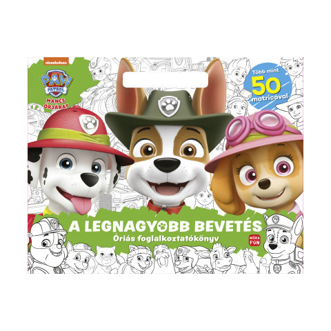Ez a foglalkoztatókönyv nem csak kívül hatalmas - belül is óriási izgalmakat rejt. Őserdőben, hegytetőn, víz mélyén és levegőben is színezős kalandra indulhatsz kedvenc kutyihőseiddel. Sőt, megismerheted a Mancs Őrjárat legújabb, spéci kütyüit és járgánya