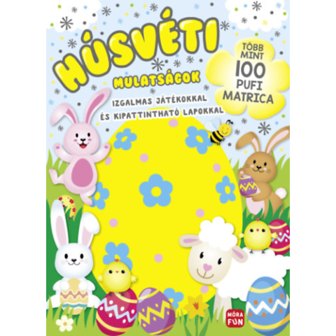 Készülj, várnak a mókás tavaszi játékok! Vezesd a tojásokhoz a húsvéti nyuszit, színezd ki a pelyhes kiscsibéket, és pattintsd ki a lapokból az aranyos húsvéti pajtásokat. A 100 pufi matricát ragaszd, ahová csak akarod! Ugorj rá!