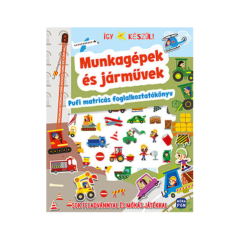 1 kép Móra Könyvkiadó Így készül! Munkagépek és járművek - Pufi matricás foglalkoztatókönyv