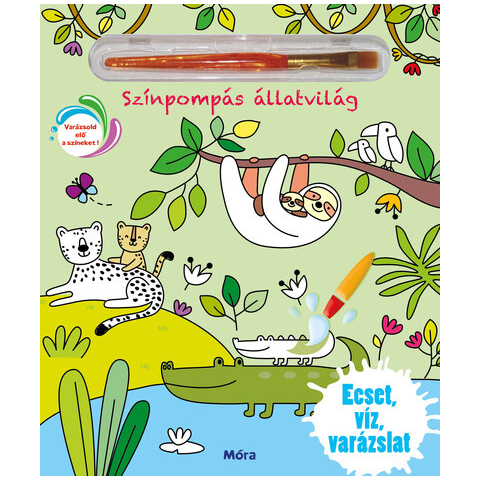 Kíváncsi vagy, milyen színű állatok élnek a tanyán, a lombhullató és a trópusi erdőkben, a szavannán és a tengerben? Vizezd be a könyvben található ecsetet, és húzd végig a sörtéit a lapok világos részein! A színek mintegy varázsütésre megjelennek. Miután a papír megszáradt, ismét eltűnnek, és már kezdheted is újra a színezést!