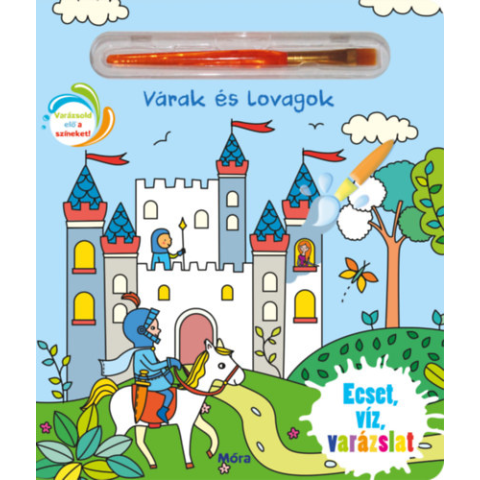 Szerinted melyik vár, kinek a páncélja, kinek a ruhája a legszebb? Vizezd be a könyvben található ecsetet, és húzd végig a sörtéit a lapok világos részein! A színek mintegy varázsütésre megjelennek. Miután a papír megszáradt, ismét eltűnnek, és már kezdheted is újra a színezést!