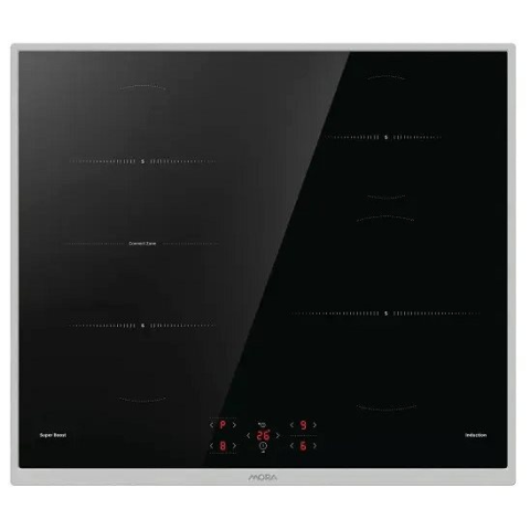 Indukciós beépíthető üvegkerámia tányér MORA VDIT 67E X praktikus rozsdamentes acél vázzal, egy csatlakoztatott ConnectZone zónával, hogy leegyszerűsítse a főzést nagy edényekben. Két különálló, egymás feletti bal főzőzóna egyetlen érintéssel áthidalható és egyetlen nagy zónává egyesíthető