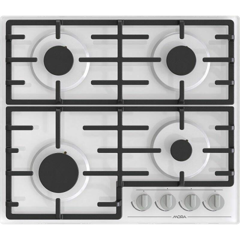 Főzőlap - gáz, beépíthető, 4 főzőzóna, égésbiztosító, elektromos gyújtás, forgatható gombok, kerekített élek, keret nélküli, fehér üveg kivitel, üveg felület, 230 V és FÖLDGÁZ csatlakozás, mérete 60 × 52 × 13 cm (Sz×Mé×Ma), a készülék csatlakoztatásához gázszerelő szükséges A tartós MORA gáz főzőlap segítségével egyszerűen azt főzöl, amihez kedved van. A beépített gáz főzőlap magas fűtőértékével, pontos és gyors hőszabályozásáva