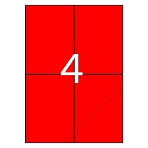 1 kép MOS Etikett címke színes 105X148 mm piros 4 db/ív, 25 ív/csomag