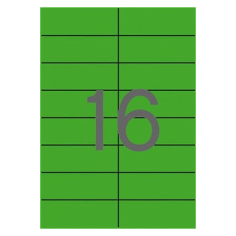 ETIKETT CÍMKE színes 105X37 MM zöld 16 DB/ÍV, 25 ív/csomag ETIKETT CÍMKE színes 105X37 MM zöld 16 DB/ÍV, 25 ív/csomag - lézernyomtatókban, fénymásológépekben és tintasugaras nyomtatókban használható - figyelemfelkeltő hatású, így vidám, könnyen megkül