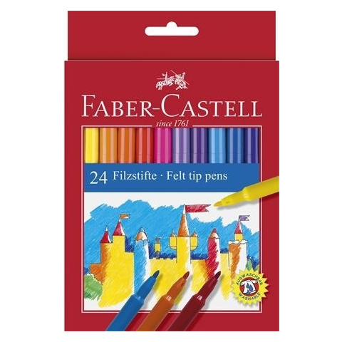 Filctoll készlet, Faber-Castell, 24 különböző szín/készlet Filctoll készlet, Faber-Castell, 24 különböző szín/készlet A Faber-Castell színes filctoll - kiválóan használhatóak papíron - kartonon és fa felületen egyaránt. - A filcek színei élénkek, a kiv
