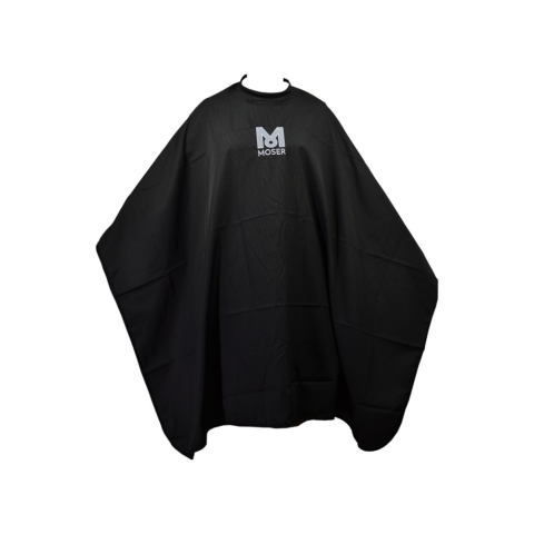 Professzionális fodrász beterítőkendő Moser hajvágásokhoz fekete színben, csíkokkal és kapcsos rögzítéssel. A hajvágó beterítőkendőre a Moser logót hímezték. Szín: fekete, fehér csíkok Anyaga: 100% poliészter Méret: 135 x 150 cm Jellemzők: - antisz