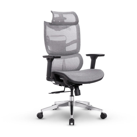 Irodaszék - forgó és ergonomikus szinkron mechanikával, terhelhetősége 130 kg, anatómiailag formázott ülőke állítható ülésmélységgel, deréktámasz állítható magassággal, állítható dőlésszögű háttámla, kárpitozott kartámasz kartámasz állítható jobbra/balra, előre/hátra, elforgatható felső résszel, műanyag görgők 6 cm átmérővel, fém konstrukció, huzat anyaga hálós anyag, lábak anyaga fém, mérete 70 × 70 cm (Sz×Mé), a vevőnek kell összesze