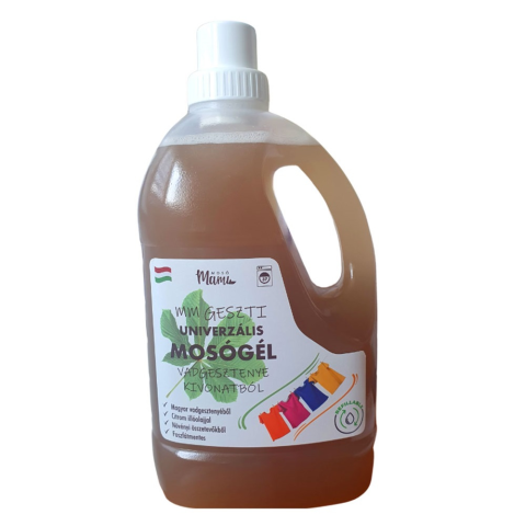 MM Geszti mosógél: Színes,-és fehér ruhákhoz fejlesztett vadgesztenyés mosógél. Minden típusú ruhaneműhöz. Már 30 foktól hatékony.