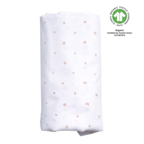MOTHERHOOD Muszlin pelenka BIO XXL 130x130 cm - Pink and Black Dots