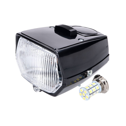 Motomotors Fényszóró szögletes fekete LED kapcsolóval Puch Maxi mopedhez