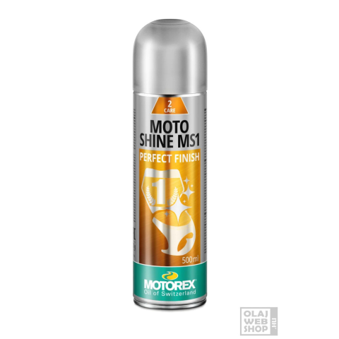 külső felület tisztítás és ápolás A Motorex Moto Shine MS1 egy különleges fényesítőszer, amellyel a motortisztítás befejezhető. Tartós fényt kölcsönöz a lakkozott, műanyag, krómozott felületeknek, egyúttal egy antisztatikus, vízlepergető védőfilmet kép