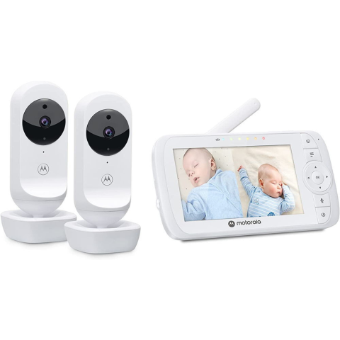Motorola VM35 5" képernyős dupla kamerás babaőrző: Nyugodt álmok, biztonságos felügyelet 👶 Ez a Motorola VM35 babaőrző két kamerával gondoskodik gyermeked biztonságáról és nyugalmáról. A 5"-os színes LCD kijelzőn egyszerre követheted a kics...