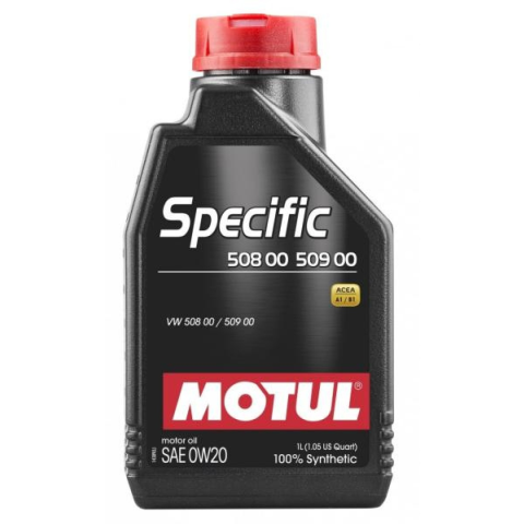 0W-20 motorolaj A Motul Specific 508.00/509.00 0W-20 egy nagy teljesítményű 100% szintetikus üzemanyag-takarékos motorolaj, amelyet kifejezetten a VAG csoport legújabb generációs motorjaihoz fejlesztettek ki,és jóváhagyott VW 508.00/509.00 kenőanyagot