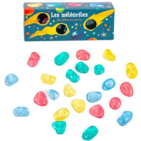 Kísérletezős játék - ajánlott 3 éves kortól A Moulin Roty világító meteoritok első pillantásra lenyűgözik a gyerekeket. Ezek a színes kavicsok napközben magukba szívják a fényt, hogy aztán sötétben ragyoghassanak és elvarázsolják a gyermekek sz
